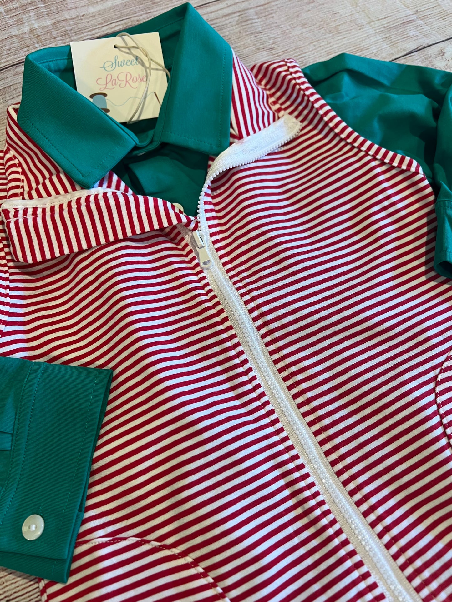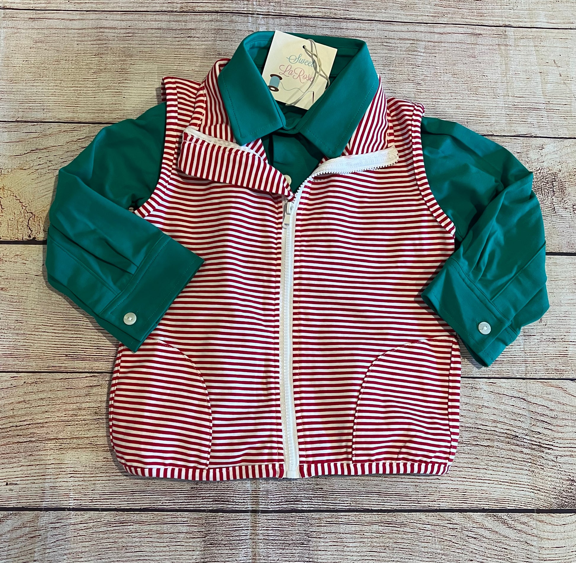 GREEN LONG SLEEVE SHIRT w/ RED STRIPE VEST