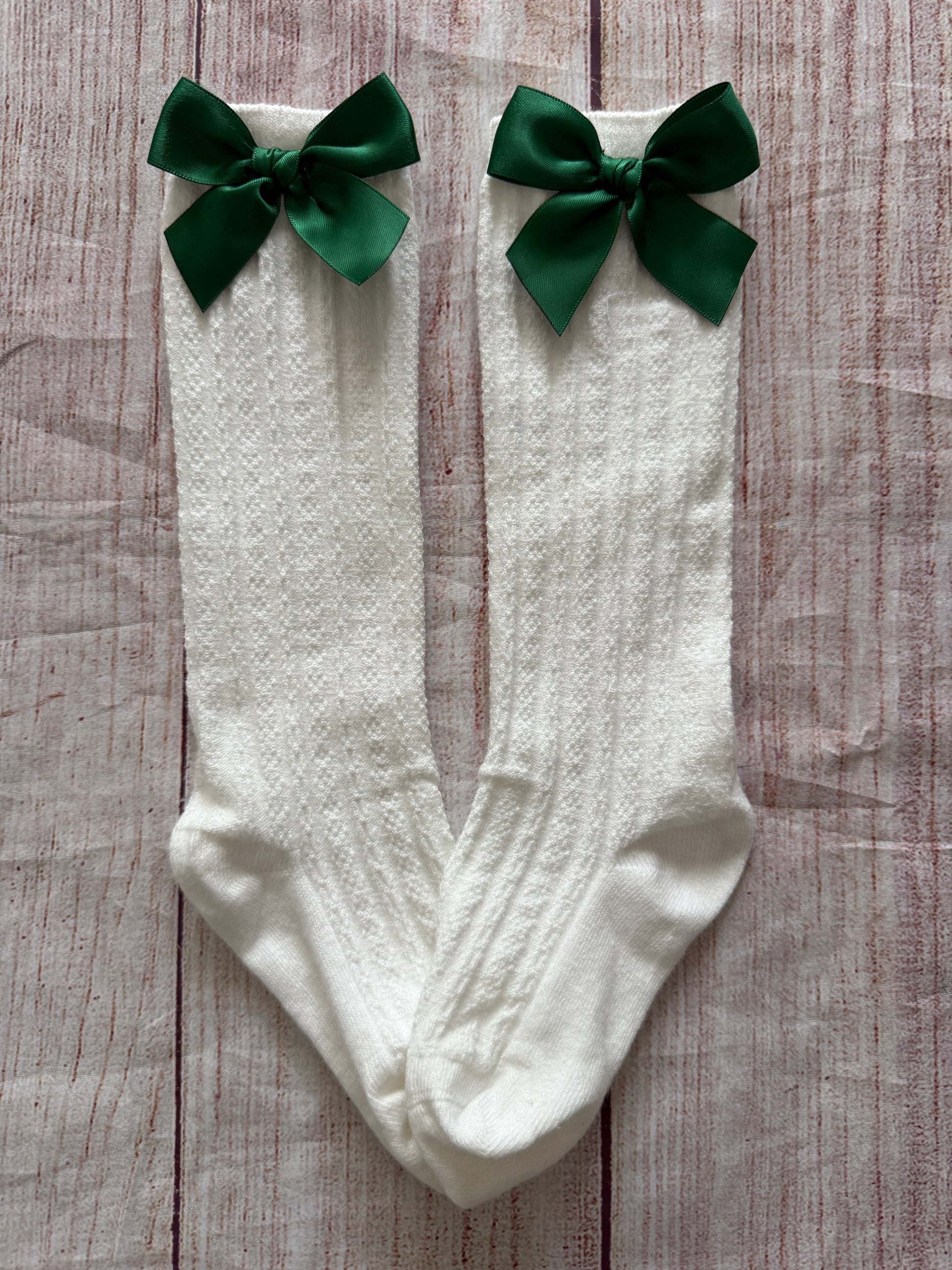 GREEN SATIN BOW SOCKS // ETA LATE SEPT TO EARLY OCT // (po206 extras)