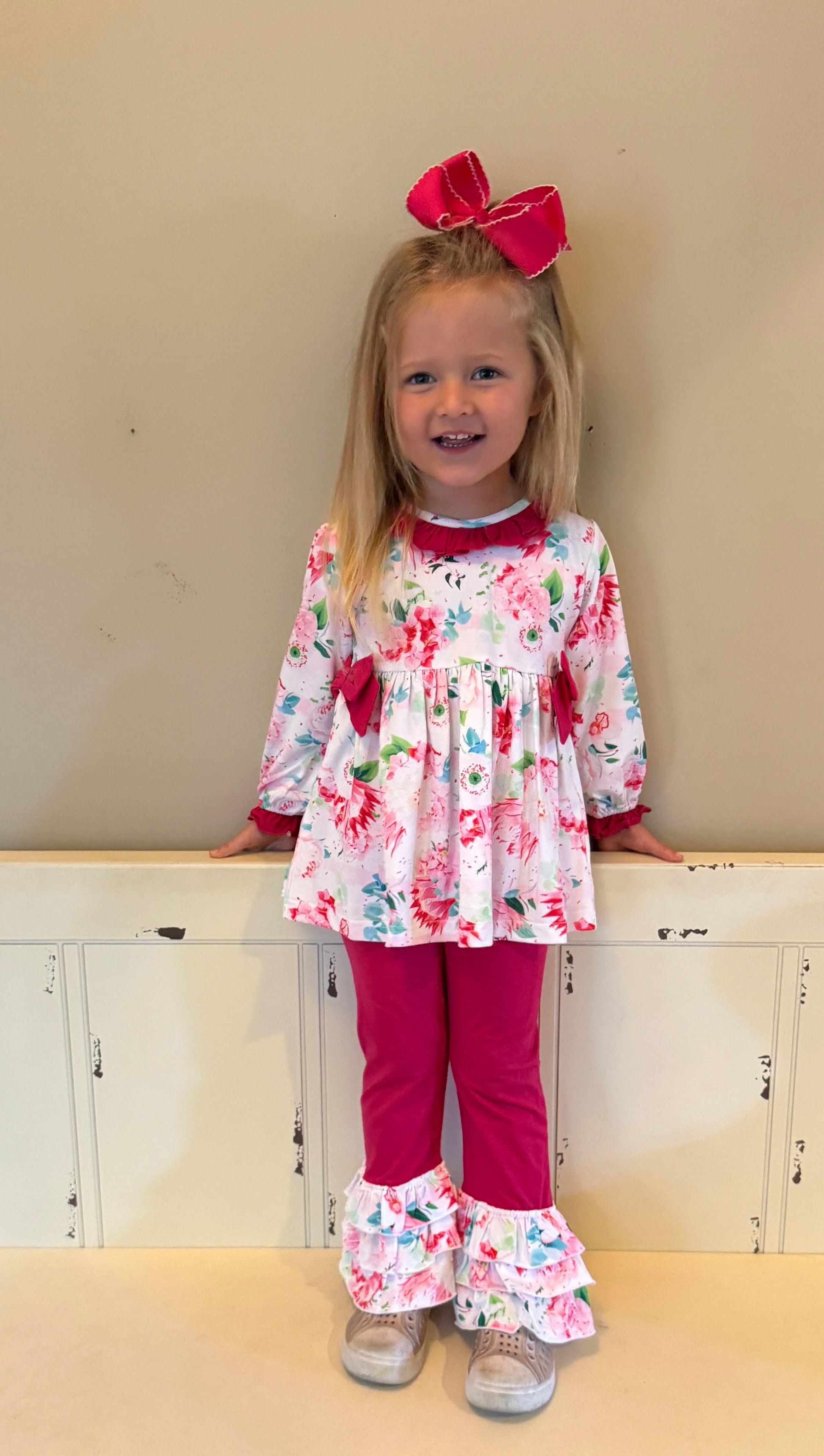 HOT PINK FLORAL KNIT PANT SET (order 208)