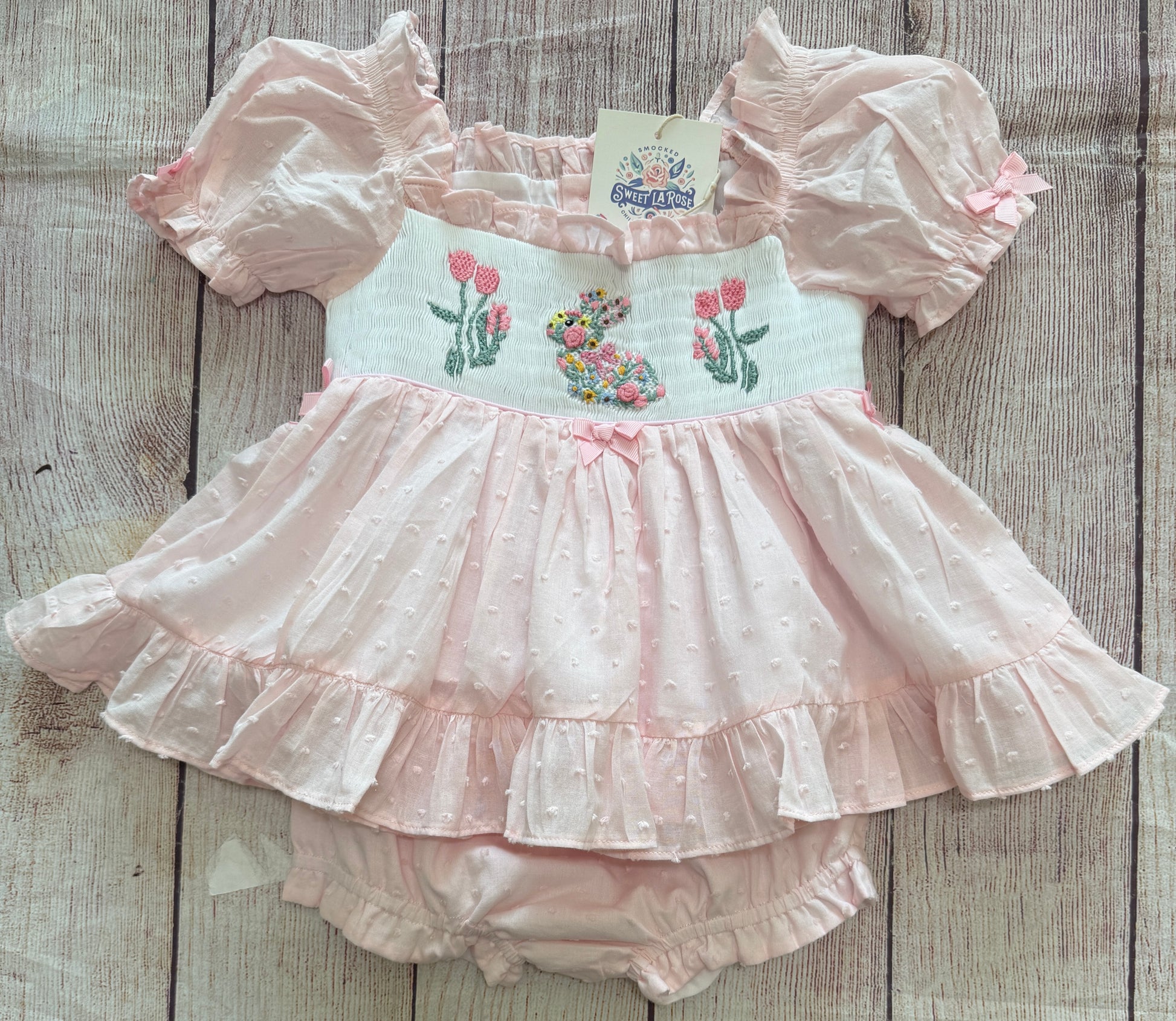 PINK DOTTED SWISS SMOCKED EASTER BUNNY BLOOMER SET (po211 extras)