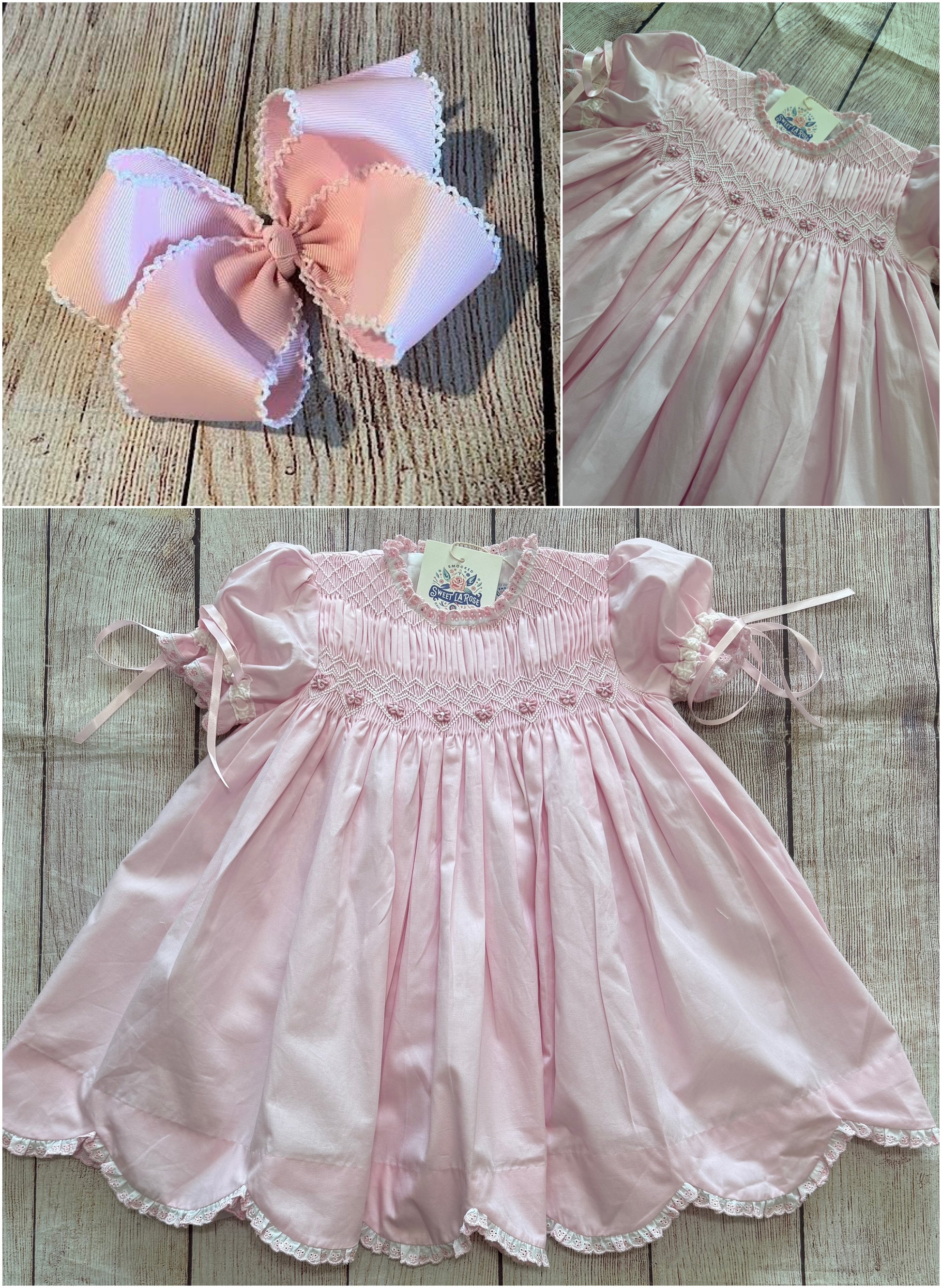 PINK SMOCKED DRESS w/ FLOWERS & RIBBONS // ETA MID APRIL // (po215)