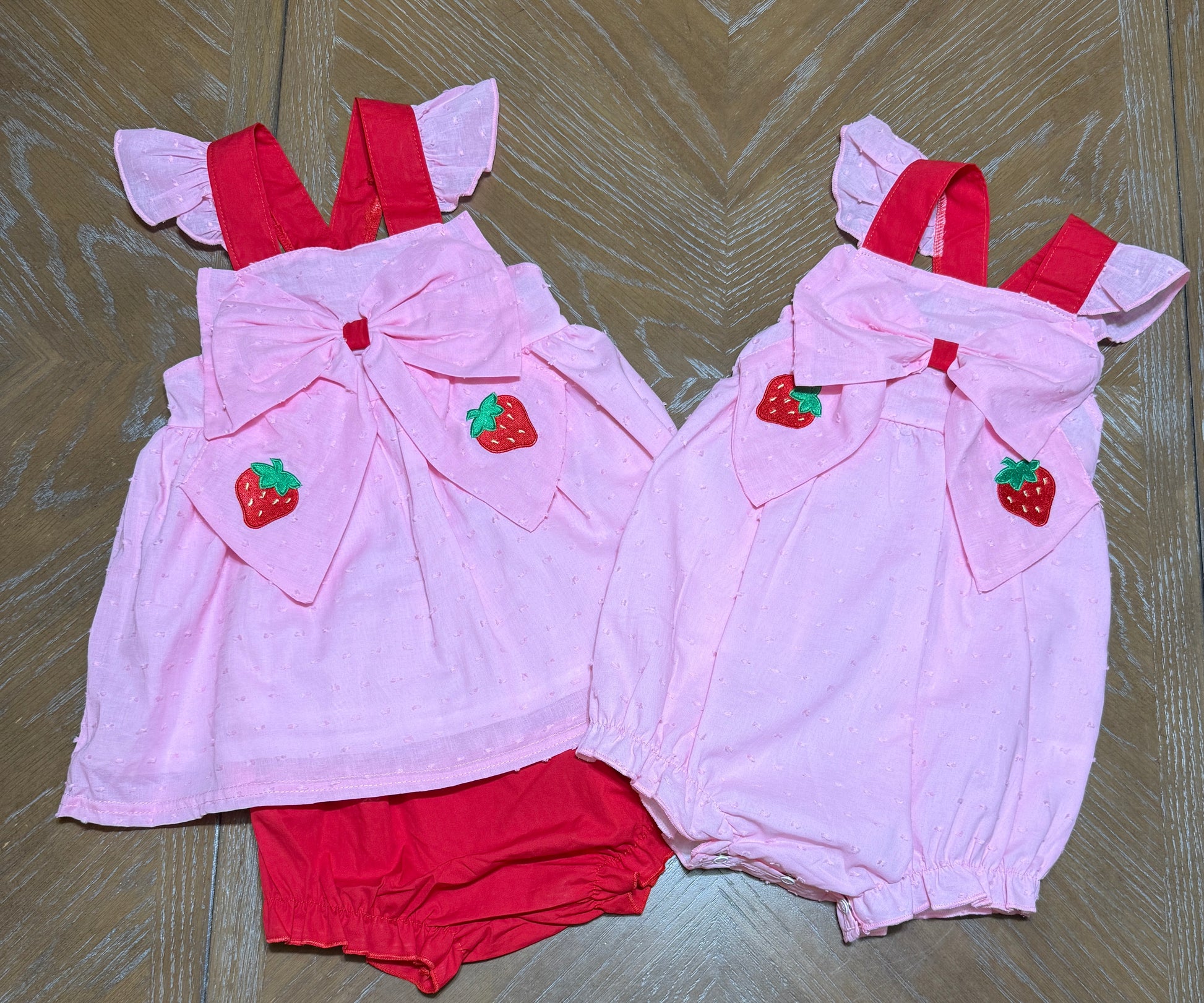 PINK STRAWBERRY SWISS DOT BLOOMER SET