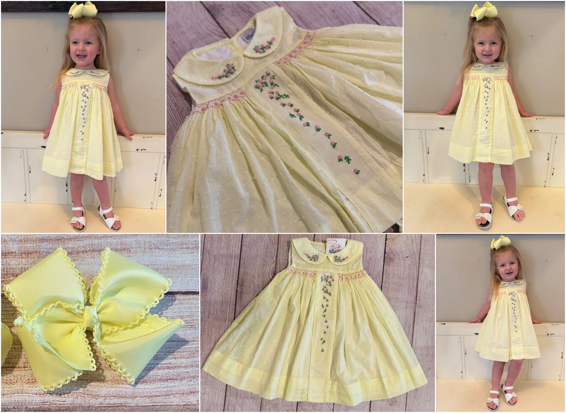 YELLOW DOT SWISS DRESS w/ HAND EMBROIDERED FLOWERS (fully lined) (order211a)